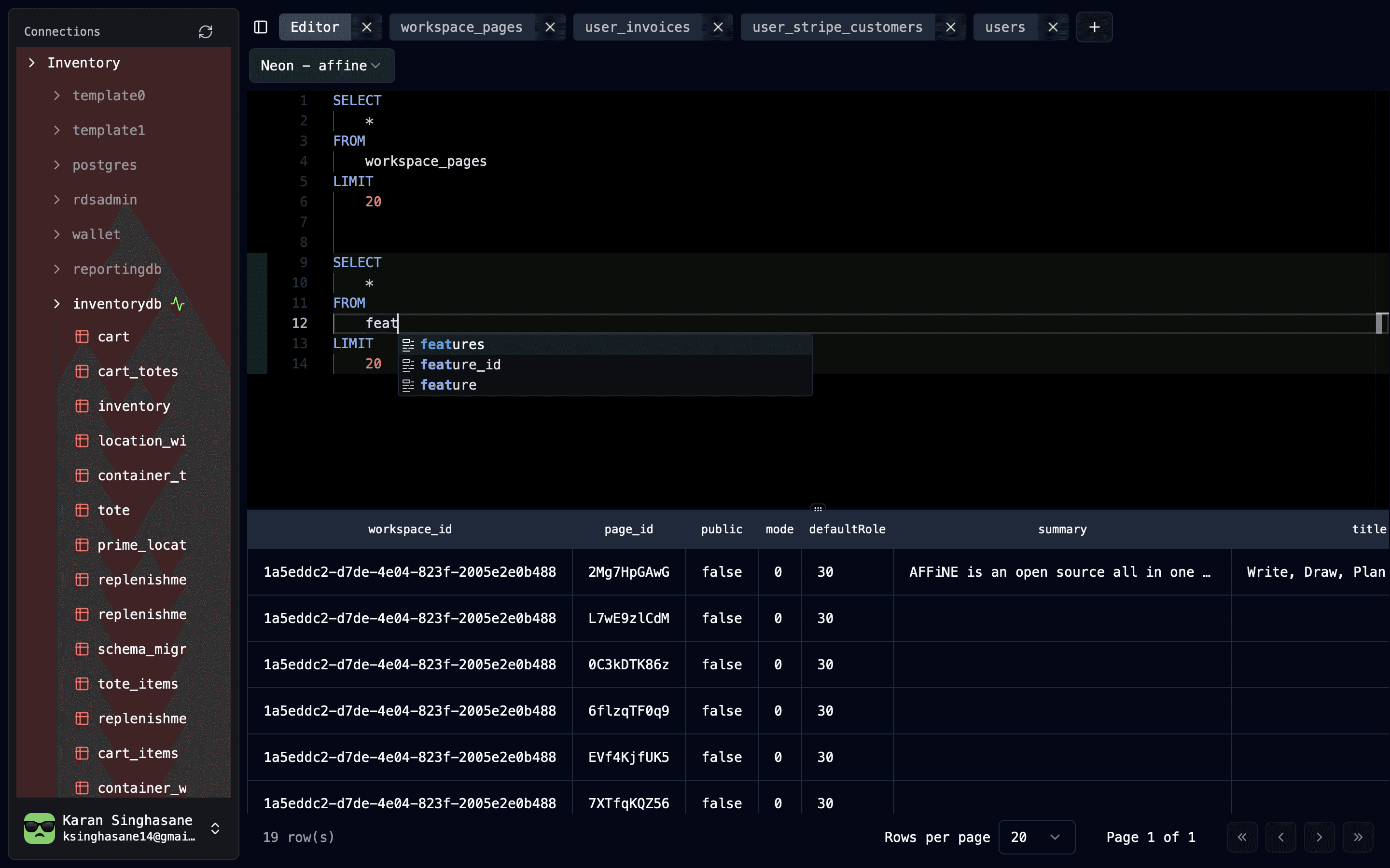 Suggestions for table and column names for added convenience. Write queries at lightspeed.