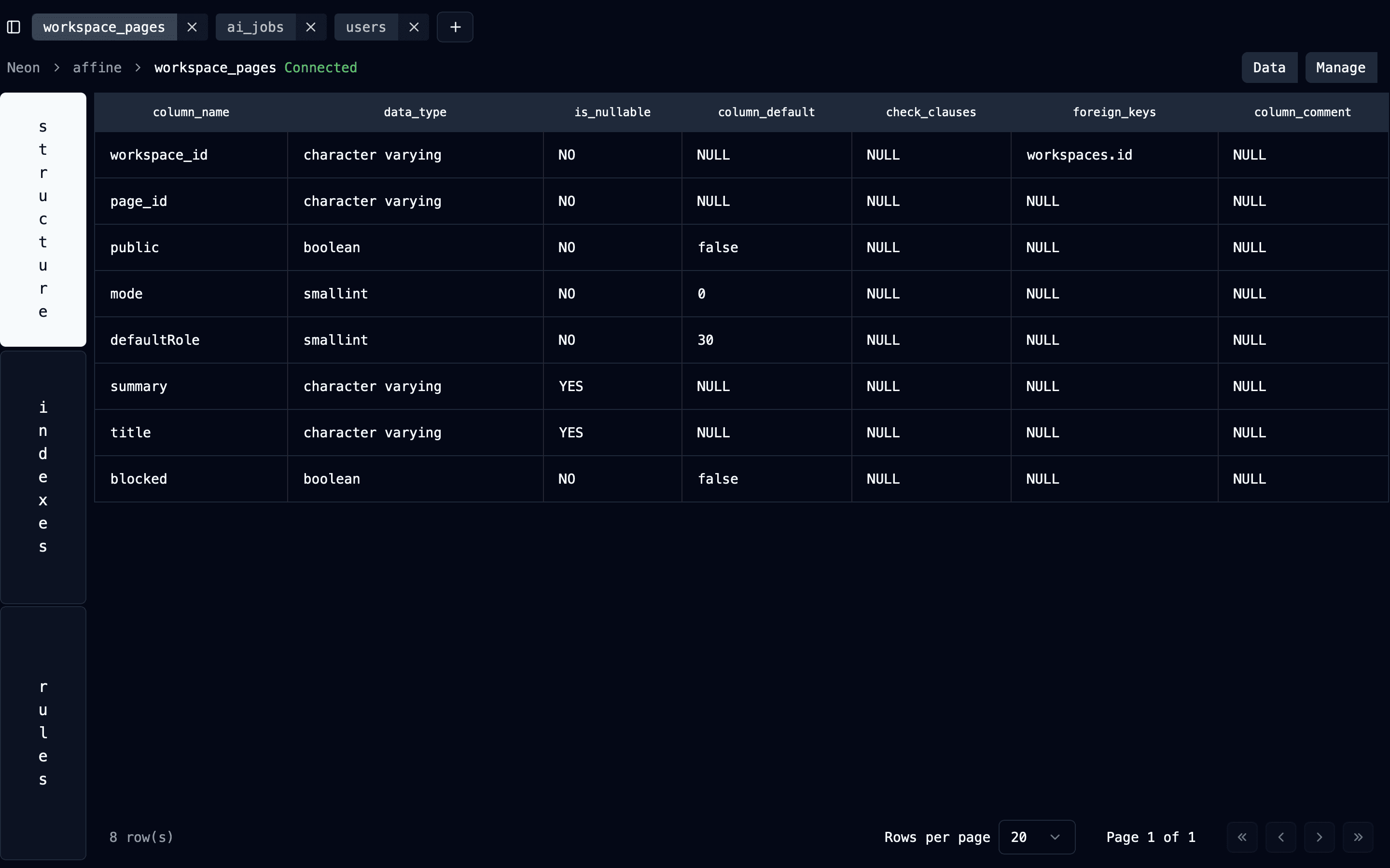 Thoughtful DX helps you quickly manage connections, databases and tables.